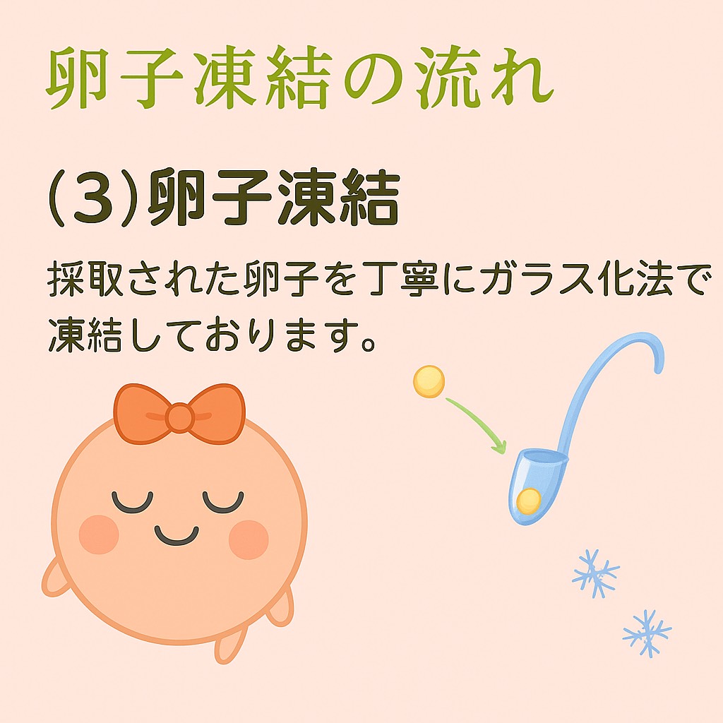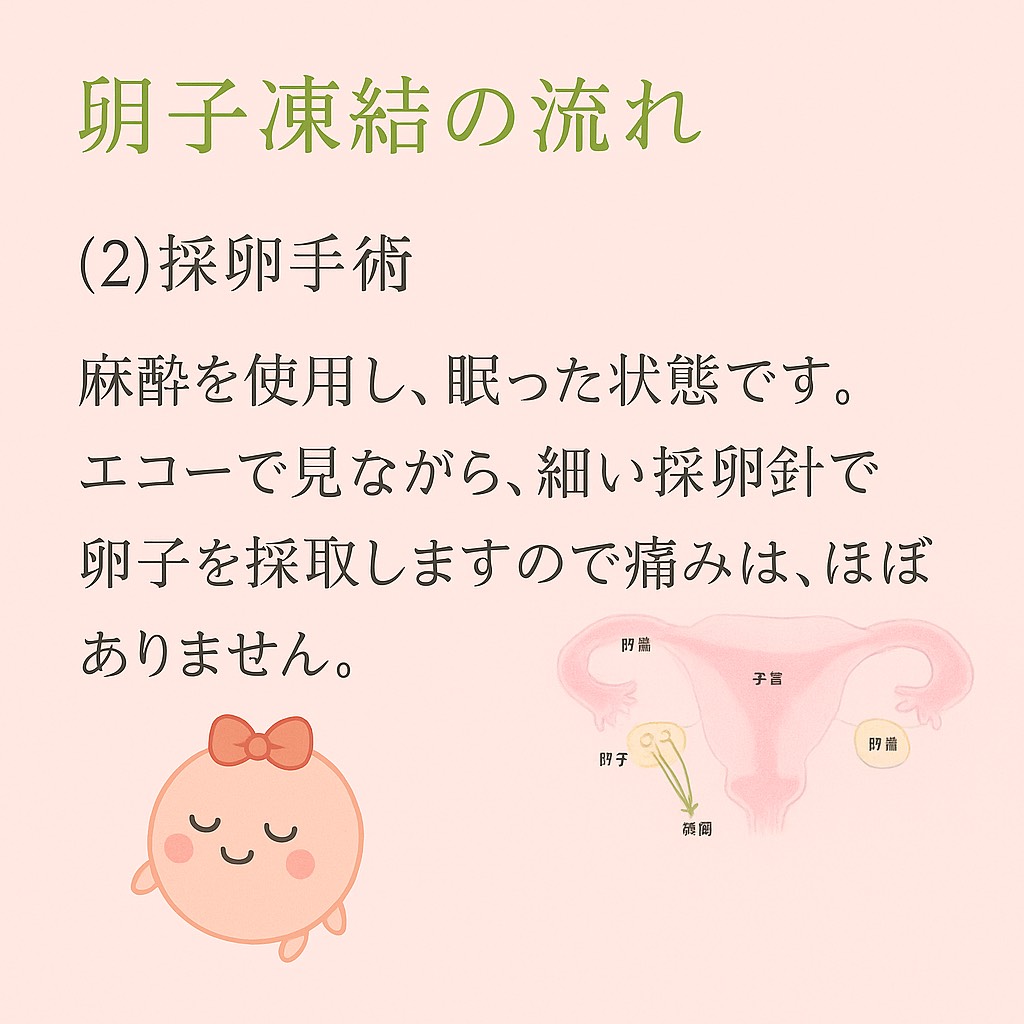 - 採卵から保存まで、通常は約2〜3週間のスケジュールで進行します。